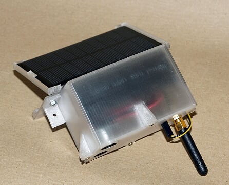 2. Datenübertragung per RFM69-Funkmodul (868 MHz) zu einem RFM69<>WLAN-Gateway. Übertragene Daten: Checksumme, Batteriespannung, Temperatur, Solarstatus, Helligkeit, Pegel. Übertragungsintervall 20 Sekunden, variabel nach Batteriespannung. (Reichweite bis zu 500 m, erfordert Gateway in Reichweite, das an ein WLAN angebunden ist. Ermöglicht die Übertragung in kürzeren Intervallen und mit mehr Daten als die Übertragung per LORA-WAN)